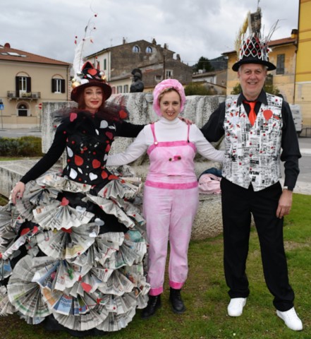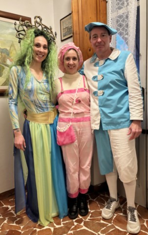 Terminati i corsi del carnevale pietrasantino 2025, Sprocco (Mirko Massei) e Scalpellina (Giovanna Piloni) fanno visita a rappresentanti di ciascuna delle 10 contrade in gara per un piccolo book fotografico in grado di mettere in risalto la bellezza dei costumi