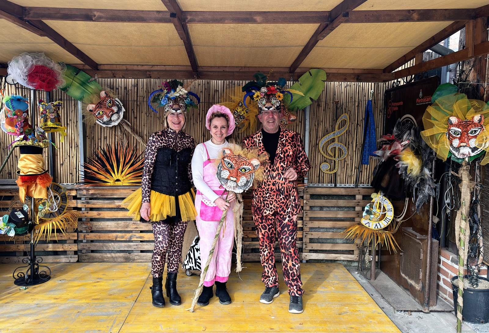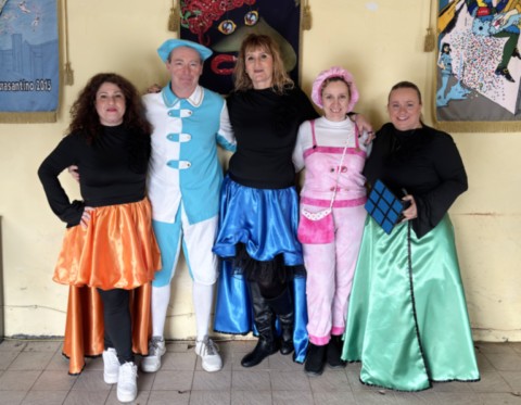 Terminati i corsi del carnevale pietrasantino 2026, Sprocco (Mirko Massei) e Scalpellina (Giovanna Piloni) fanno visita a rappresentanti di ciascuna delle 10 contrade in gara per un piccolo book fotografico che ancora una volta possa evidenziare la qualità degli splendidi costumi