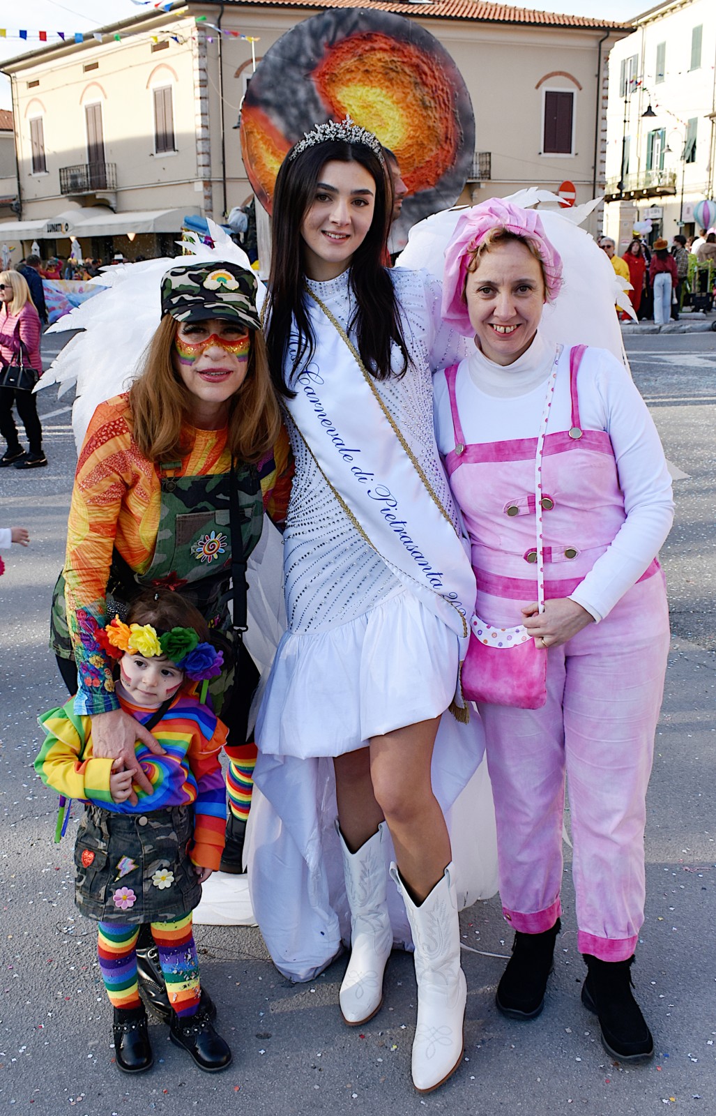 Pontestrada - (al corso, da sinistra) la piccola Zoe, Rita Dani e miss carnevale Harissa Favret